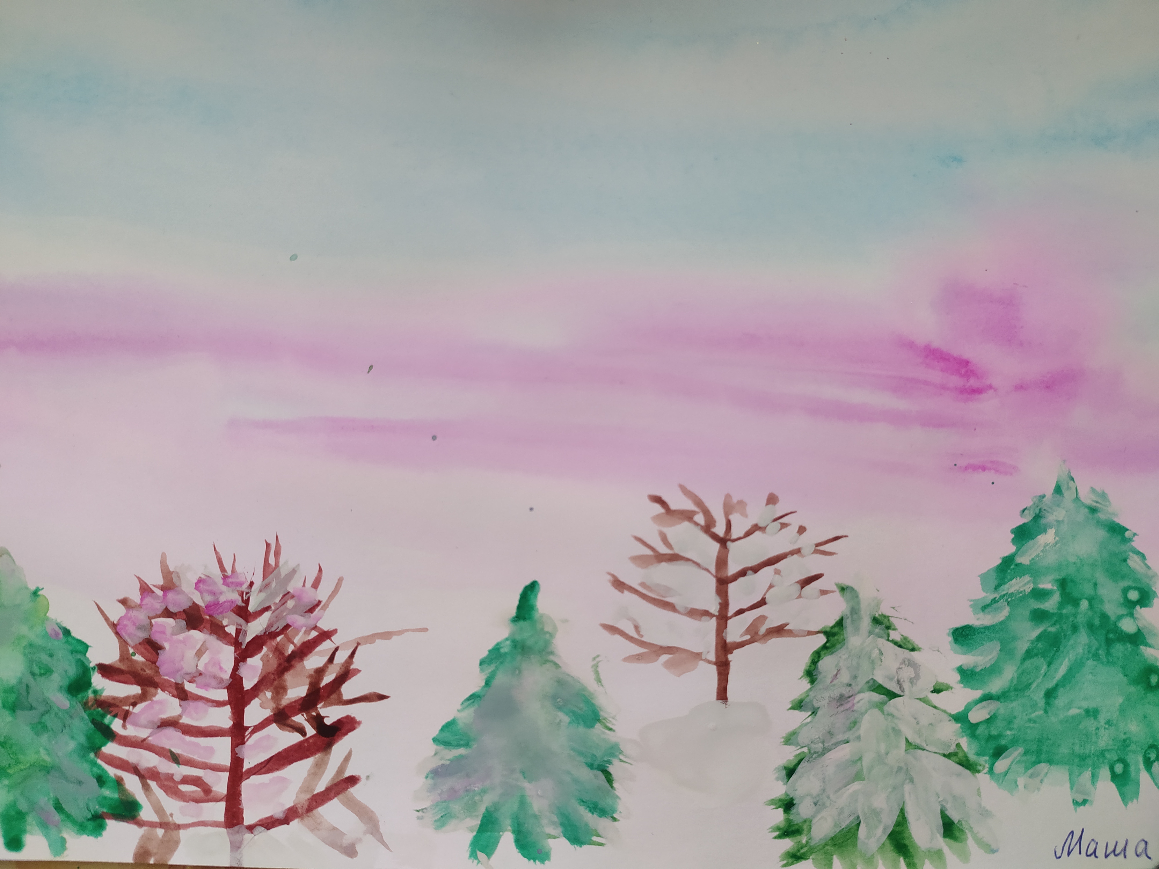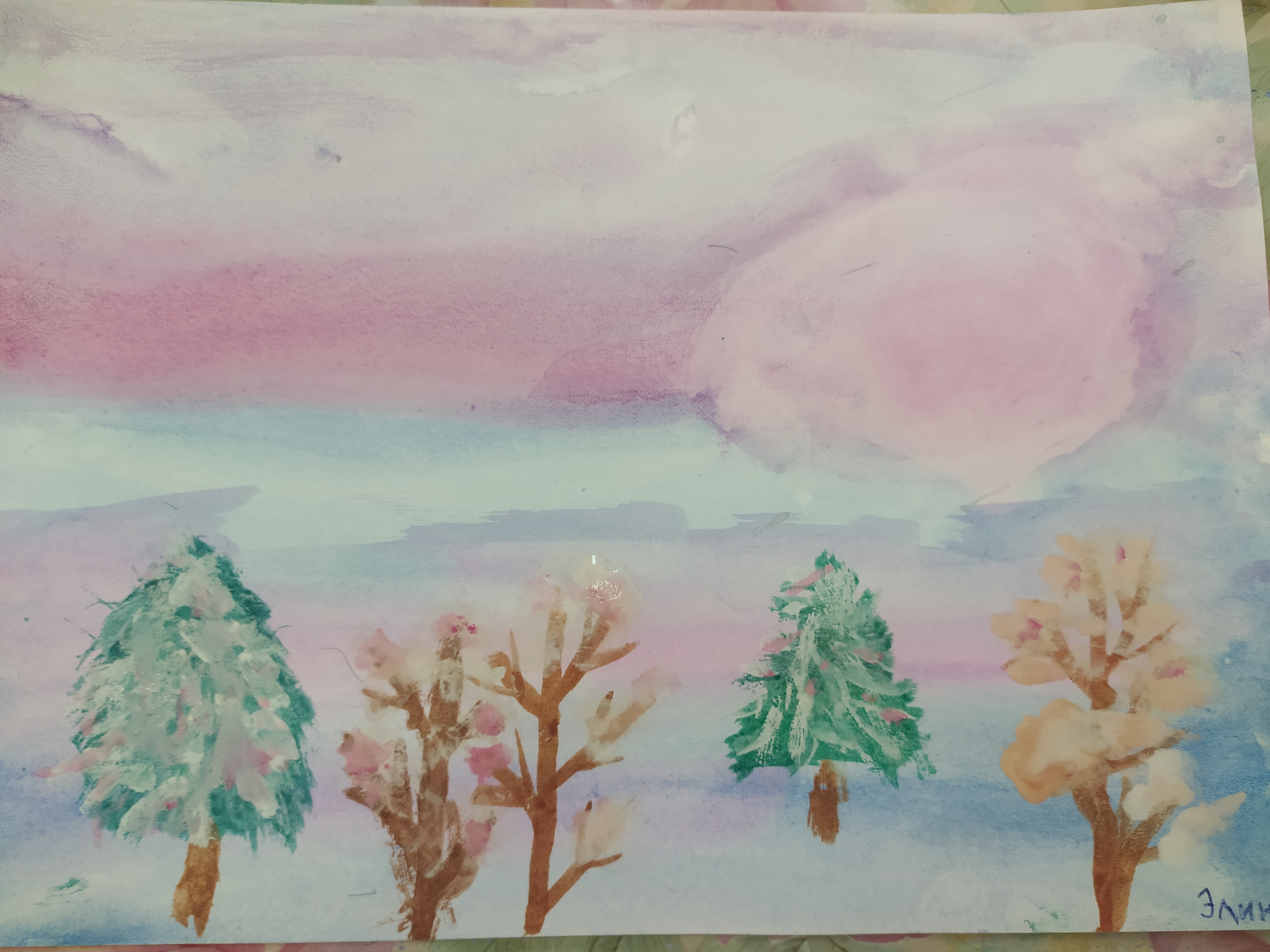 Тема: "Заря. Деревья в снегу"